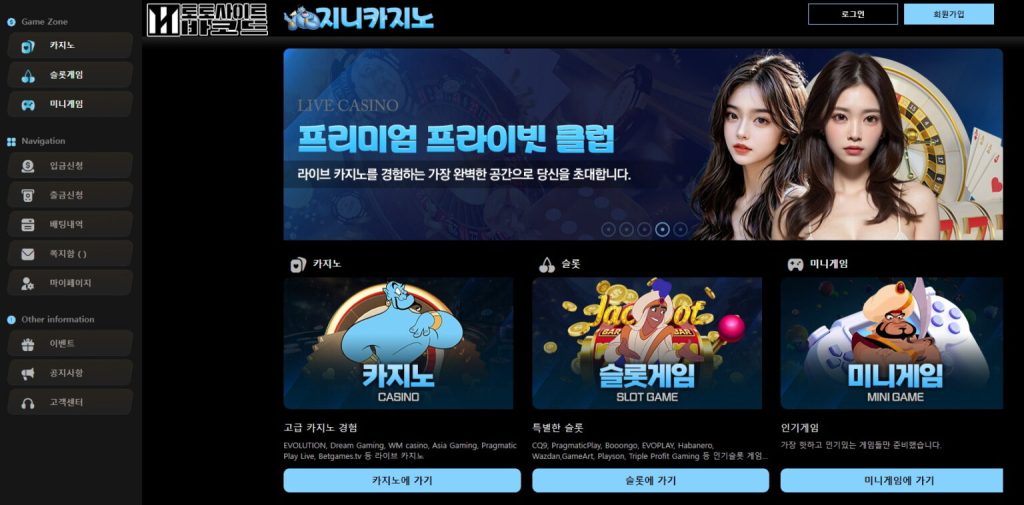 또한 지니카지노는 사용자 경험을 강화하기 위해 다양한 이벤트와 프로모션 프로그램을 운영하고 있습니다. 정기적으로 진행되는 이벤트와 혜택 프로그램은 이용자들에게 추가적인 즐거움과 참여 기회를 제공하며, 플랫폼 이용 경험을 더욱 풍부하게 만드는 역할을 합니다. 이러한 이벤트는 단순한 홍보 목적을 넘어 이용자 만족도와 플랫폼 참여도를 높이기 위한 운영 전략의 일환으로 기획되고 있습니다.